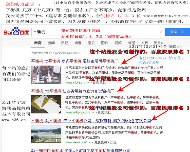 平衡機(jī) : 2018-05-23上線(xiàn) 2018-06-08排名第5頁(yè) 2018-07-01排名第30名 2018-08-15排名第11名 2018-08-26排名第7名 (注:平衡機(jī)一臺(tái)需要幾萬(wàn)到10多萬(wàn)元, 是難排名的關(guān)鍵詞,百度重點(diǎn)關(guān)照,因百度推廣的話(huà),大概要60元一點(diǎn)擊)